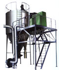 概述: 噴霧干燥是液體工藝成形和干燥工業中廣泛應用的工藝。適用于從溶液、乳液、懸浮液和可塑性糊狀液體原料中生成粉狀、顆粒狀或塊狀固體產品。因此,當成品的顆粒大小分布、殘留水份含量、堆積密度和顆粒形狀必須符合精確的標準時。噴霧干燥是一道合適的工藝。 工作原理: 空氣經過濾和加熱,進入干燥器頂部空氣分配器,熱空氣呈螺旋狀均勻地進入干燥室。料液經塔體頂部的高速離心霧化器,(旋轉)噴霧成細微的霧狀液珠,與熱空氣并流接觸在短的時間內可干燥為成品。成品連續地由干燥塔底部和旋風分離器中輸出,廢氣由風機排空。 特點: ★ 干燥速度快,料液經霧化后表面積大大增加,在熱風氣流中,瞬間就可蒸發95%-98%的水份,完成干燥時間僅需數秒,特別適用于熱敏性物料的干燥。 ★ 產品具有良好的均勻度、流動性和溶解性,產品純度高,質量好。 ★ 生產過程簡化,操作控制方便。對于含濕量40—60%(特殊物料可達90%)的液體能一次干燥成粉粒產品,干燥后不需粉碎和篩選,減少生產工序,提高產品純度。對產品粒徑,松密度,水份,在一定范圍內可通過改變操作條件進行調整,控制和管理都方便。